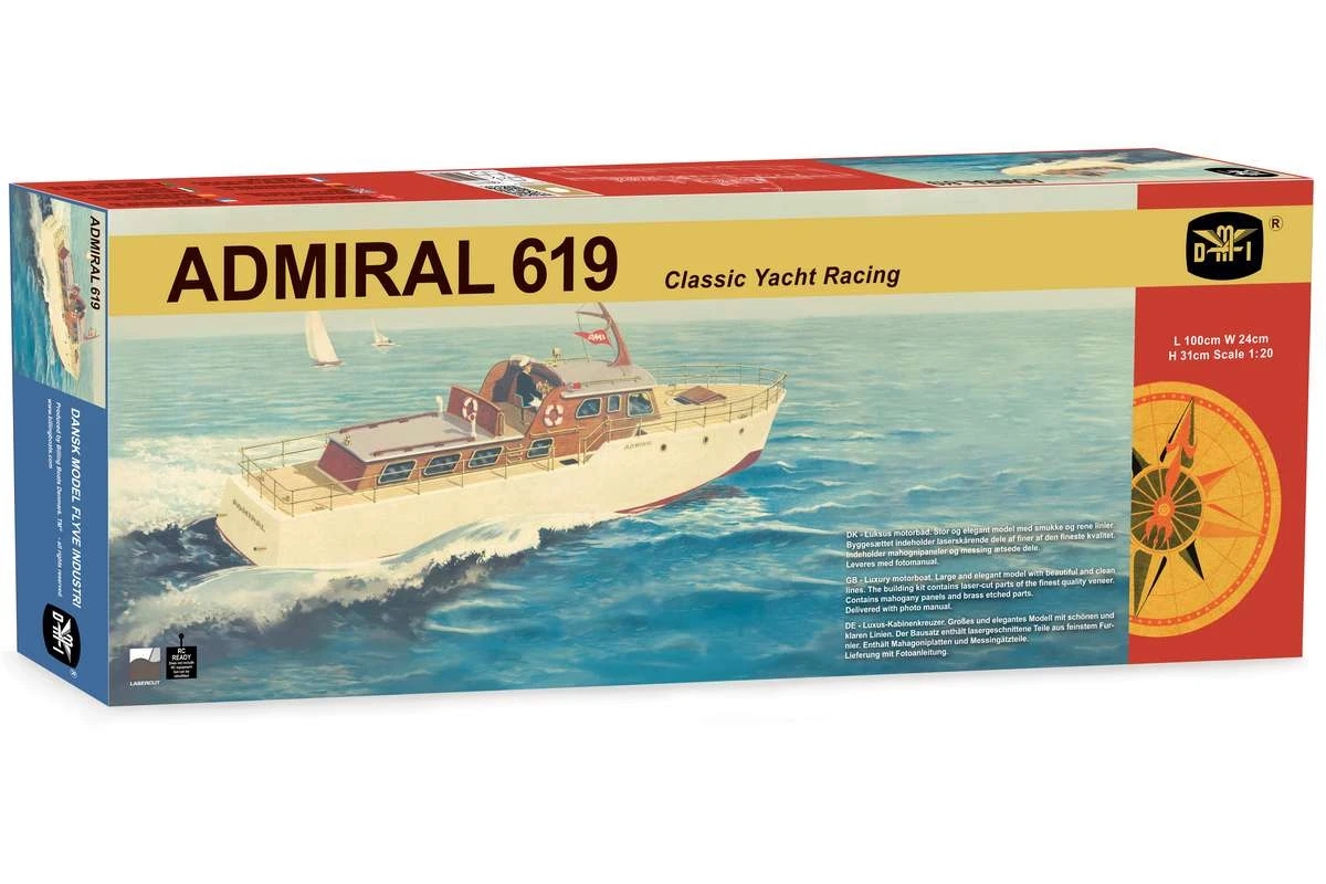 Admiral fra DMI (Dansk Modelflyve Industri) er en sand klassiker fra midten af det 20. århundredes modelsejlads og huskes stadig med glæde blandt entusiaster. Sættet blev oprindeligt udgivet i 1965 og repræsenterede en af virksomhedens fineste kabinecruiser-modeller i træ, designet til at afspejle efterkrigstidens elegante motoryachter.