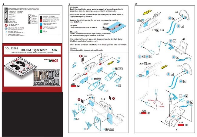 Eduard 3DL32002 DeHavilland DH.82A Tiger Moth 1/32