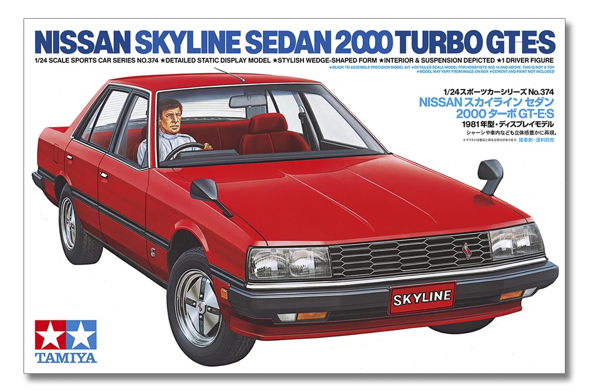 Tamiya byder velkommen til en opdateret genudgivelse af vare 24022 1/24 Nissan Skyline 2000 TURBO GT-E ·S (oprindeligt solgt i 1981: motoriseret på det tidspunkt) med det ændrede produktnavn 1/24 Nissan Skyline Sedan 2000 Turbo GT-E'S, opdaterede klistermærker, instruktionsmanual og emballage.