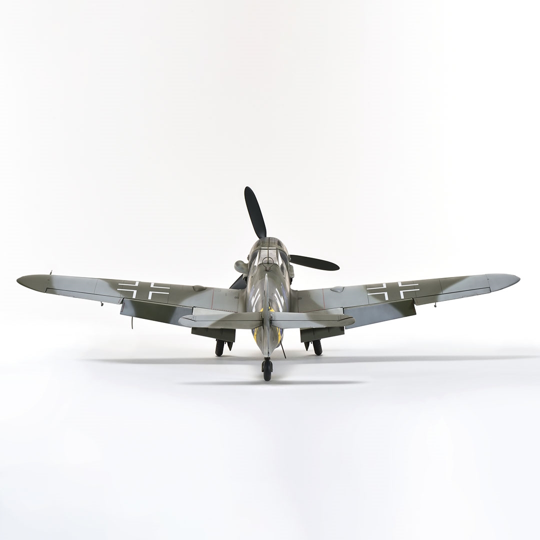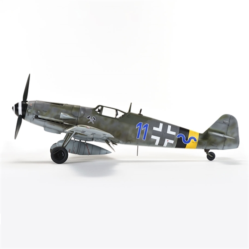 Du kan vælge at bygge en af ​​de to typer farveskemaer og markeringer "Blå 11" eller "Hvid 1". "Blå 11" med den karakteristiske hammer som et personligt mærke og "Hvid 1" med JG4-eskadrillens rustningsmærke. Vi inkluderer også en speciel fremadvendt pilotfigur i resin.